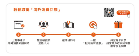 - 萬事達卡並非任何參與商戶的供應商,不負責提供 Mastercard® Travel Rewards 海外消費回饋平台下的產品和服務。產品和服務由參與商戶自行提供,萬事達卡對該等產品及/或服務不承擔任何責任。在任何情況下,均不得解釋為萬事達卡代言或推薦於 Mastercard® Travel Rewards 海外消費回饋推廣活動中涵蓋的任何產品或服務。持卡人如對產品和服務有任何疑問,請直接與商戶聯繫查詢。